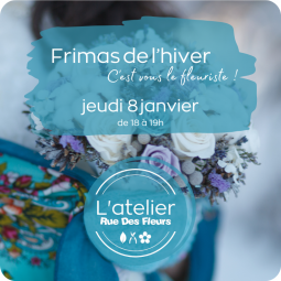 Frimas de l'hiver, l'atelier fleurs, jeudi 8 janvier 2026 de 18h à 19h, pour entrevoir le monde floral et ses mystères, Partagez un moment unique au sein de notre atelier et élaborez avec nos artisans fleuristes vos centres de tables, bouquets féeriques, bijoux de fleurs ou compositions...