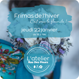 Frimas de l'hiver, l'atelier fleurs, jeudi 22 janvier 2026 de 18h à 19h, pour entrevoir le monde floral et ses mystères, Partagez un moment unique au sein de notre atelier et élaborez avec nos artisans fleuristes vos centres de tables, bouquets féeriques, bijoux de fleurs ou compositions...